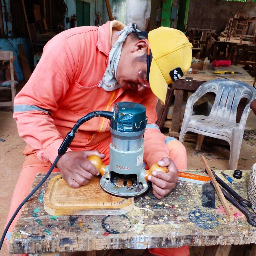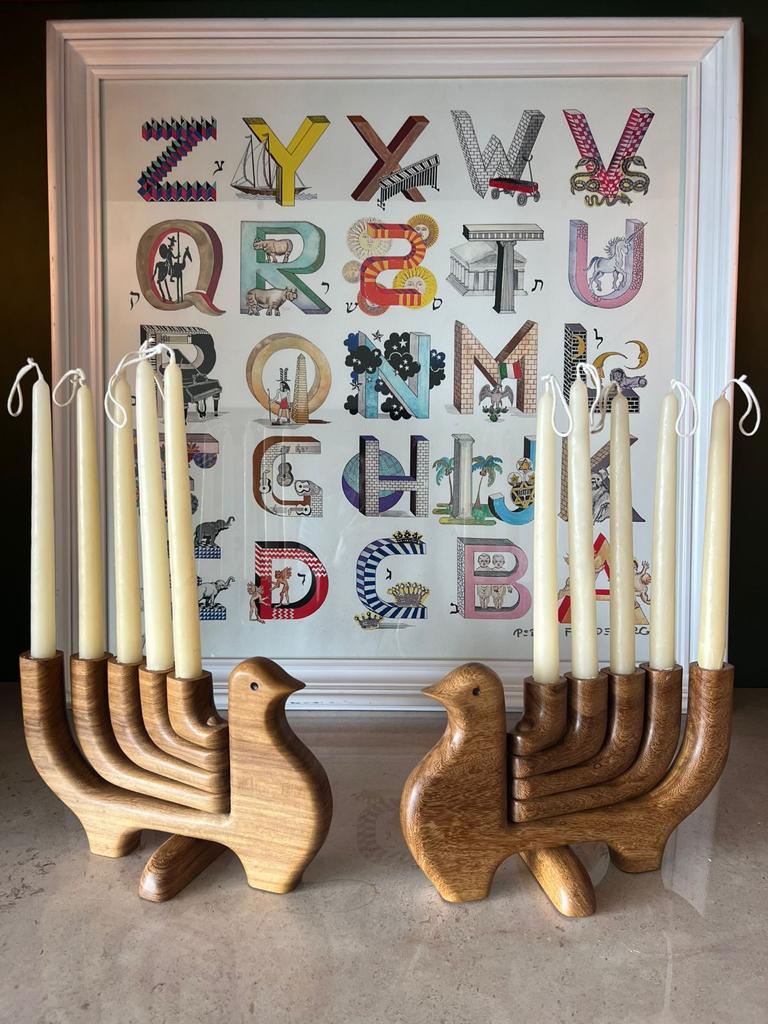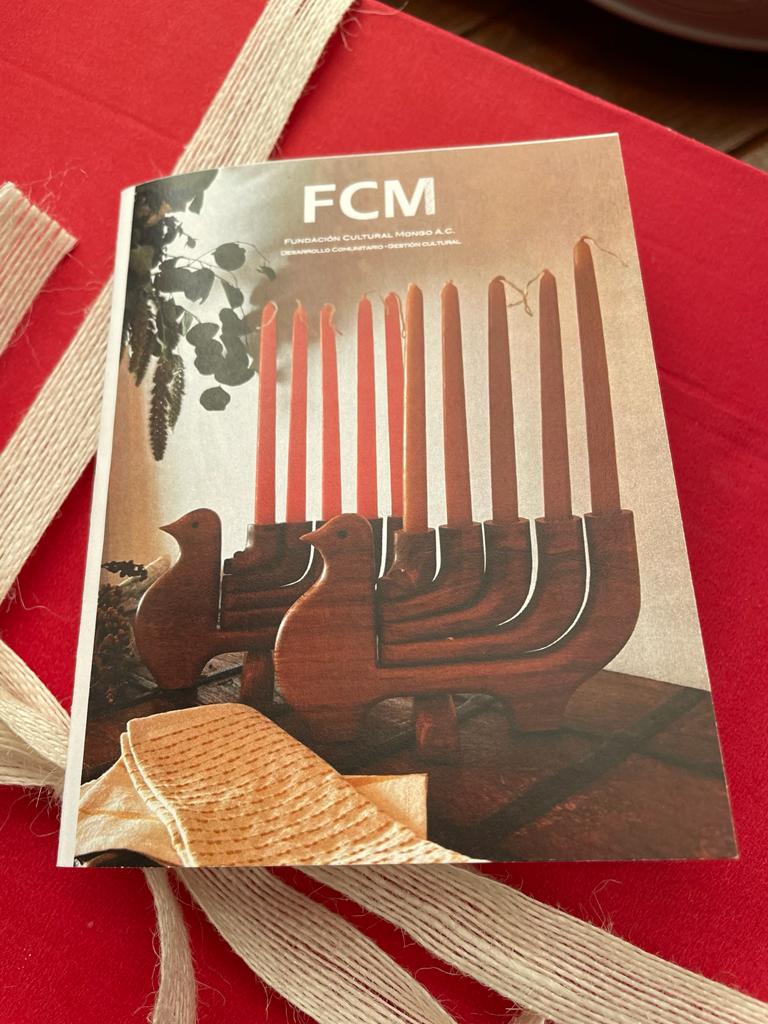Candelabro de madera de Cocuite, color miel, utilizando maderas autorizadas en el Bosque de Niebla, Veracruz.