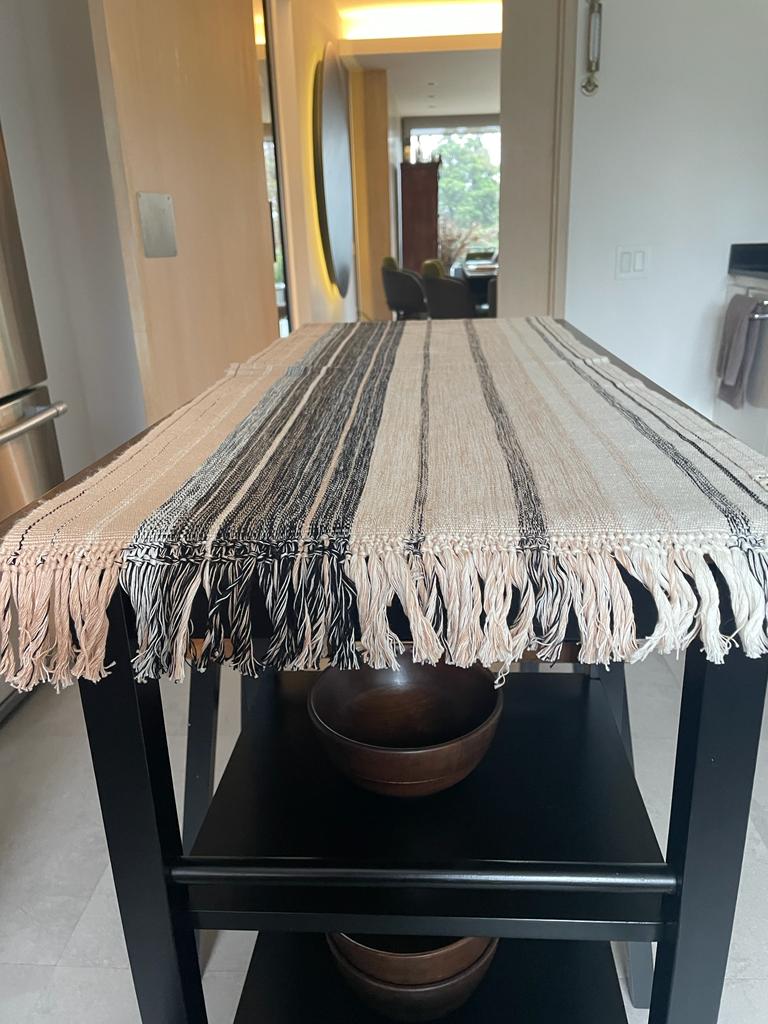 Camino decorativo, tejido en telar de pedal con técnica de matizado a través de un conteo  preciso de hilos. Elaborado por comunidades mayas  de Zinacantán, Chiapas.