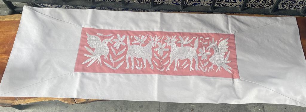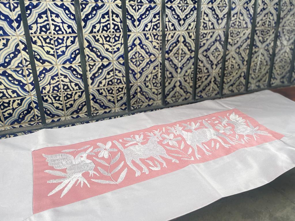 Camino decorativo bordado a mano por comunidad Otomí, de la Sierra Norte de Puebla.