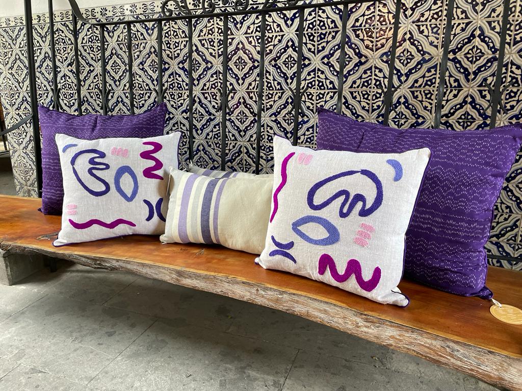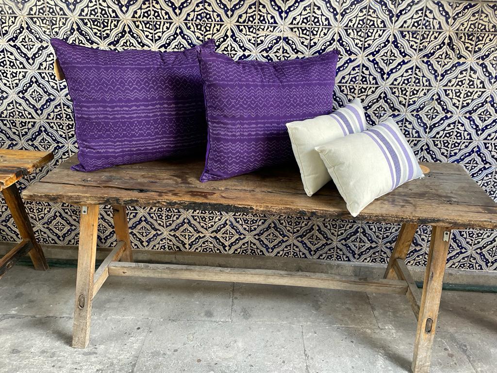 Cojín decorativo, tejido en telar de pedal en Estado de México.