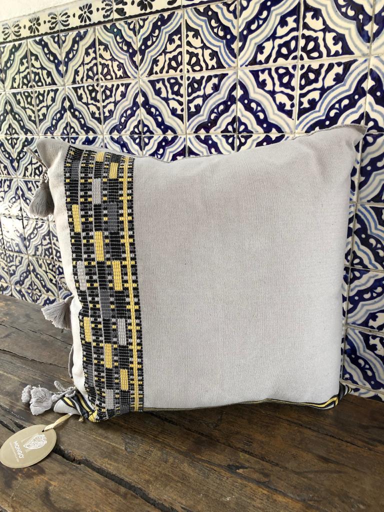 Cojín decorativo, tejido en telar de cintura por comunidades mayas (Tsotsiles) de Chiapas.