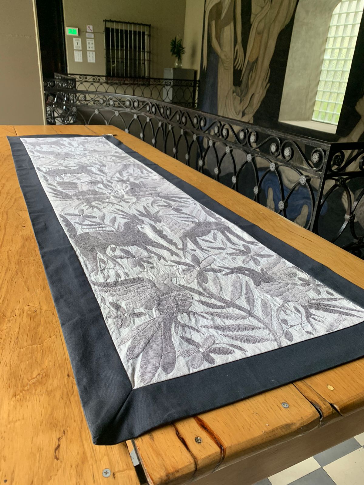 Camino decorativo bordado a mano por grupos otomís de la Sierra Norte de Puebla.
