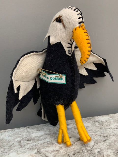 El águila encarna el espíritu del más noble guerrero. Relacionado al sol y al guerrero águila. En Teotihuacán, lugar en el que se crearon el sol y la luna, el águila paso por la hoguera en donde se sacrificaron los Dioses y se convirtieron en astros. Al cruzar, parte de las plumas se le quemaron por eso es blanco con negro.