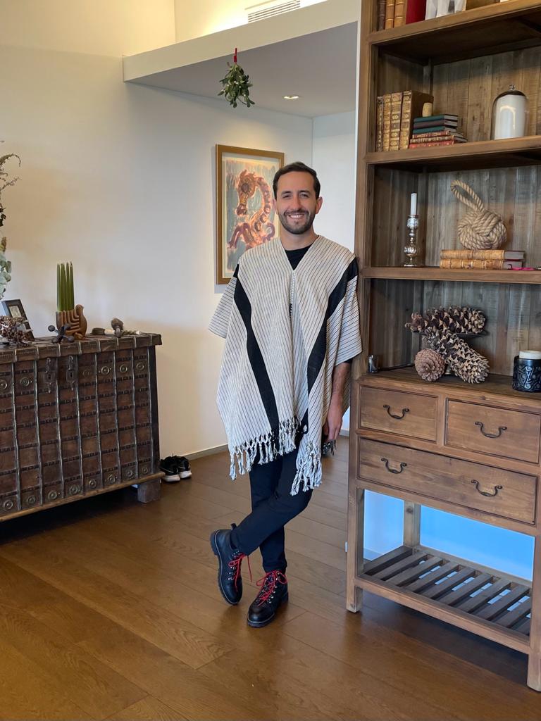 Poncho elaborado en telar de cintura por mujeres tsotsiles de Zinacantán, Chiapas. Lavado a mano.